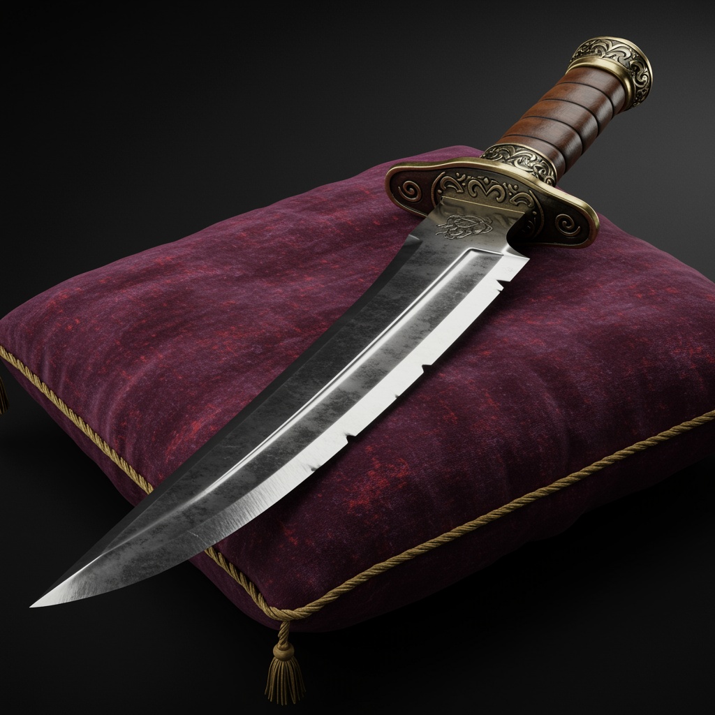 The story is yours to figure out, but for this exercise try to describe this sword (and perhaps the pillow) in as great a detail as you can. In your tale the number of notches can be as important as the design. The goal is to practice your descriptions, whatever story you plan to tell.